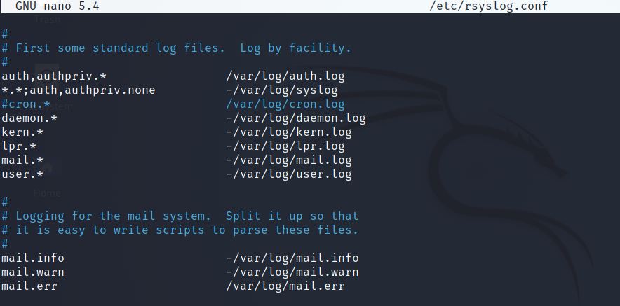 rsyslog is the default logging service available on most Linux distributions. This allows an administrator to configure logging details of different services and related information. rsyslog, syslog-ng, syslog, etc. are the different names used by different Linux distributions. For example, Kali Linux has rsyslog by default.